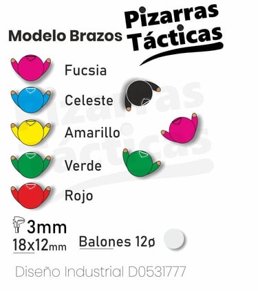 Con tu pizarra obtendrás un juego de fichas magnéticas con orientación corporal de 5+5 jugadores + 1 balón. Están cortadas en láser y son de metacrilato con un imán trasero.