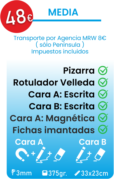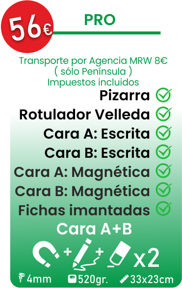 El cuerpo de la pizarra está fabricado con materiales sostenibles con los cantos redondeados. Tienen un tratamiento "ferroso" para poder usar las fichas imantadas.